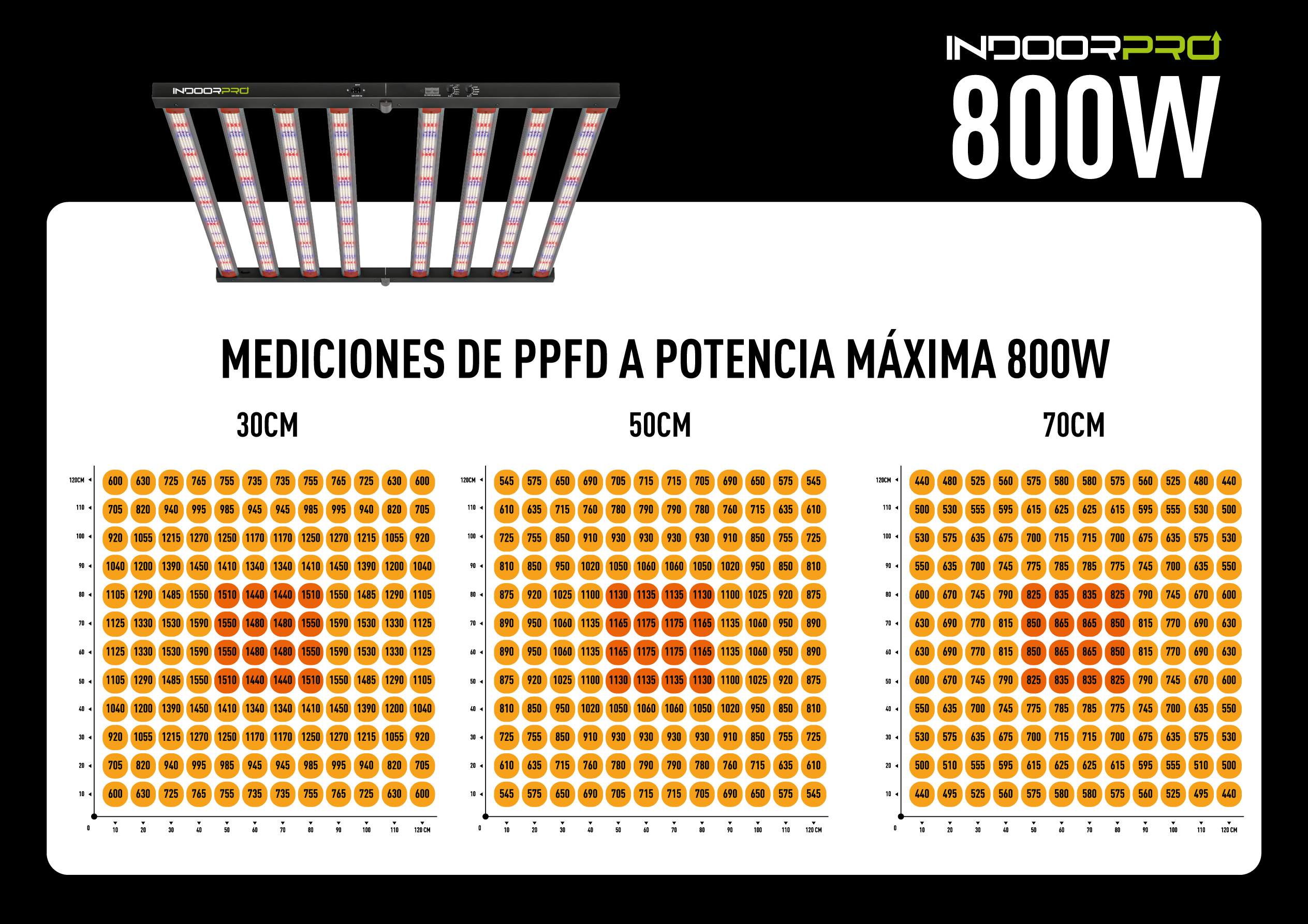 - Potencia total: 800W (Full Spectrum) + 100W (UV)